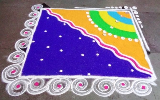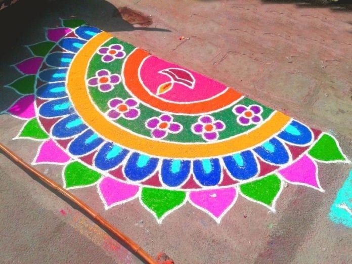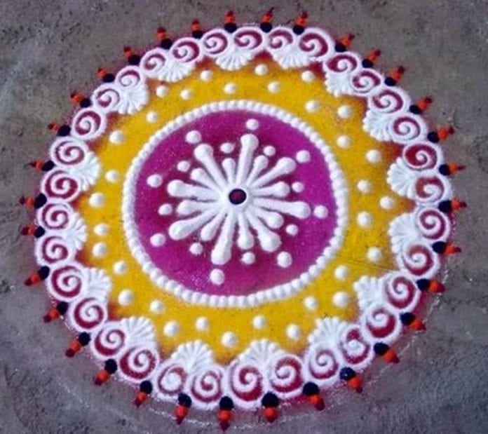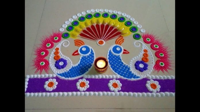 thus, in order to make this year’s Diwali filled with colors, here are some of the best collections for2020 Rangoli designs. The Rangoli designs provided here are super easy to create, colorful and simple. Plus, one can also make use of these Rangoli designs during Ganpati, Holi, Ugadi, Sankranti and various other auspicious festivals.