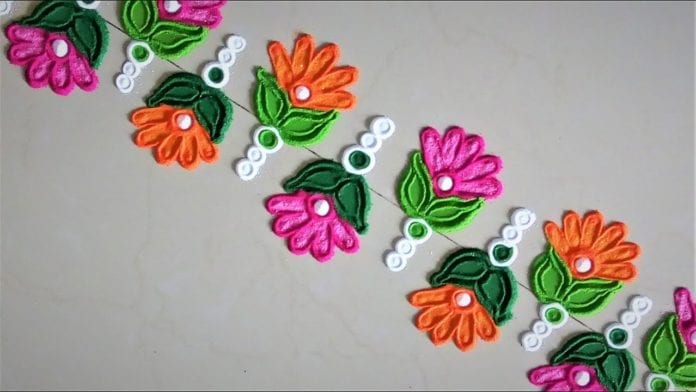 Here are some of the summed up collection of rangoli border designs. They contain all i.e. from trendy to traditional designs. These designs are being covered from floral to geometric designs. Border rangoli designs look breathtaking near entrances and doors and also give a warm welcoming atmosphere to everyone. here are some of the best and easy & drawable rangolis that will please the goddess Laxmi. Here are all the latest collection of Border Rangoli Designs one can try for this year’s Diwali.
