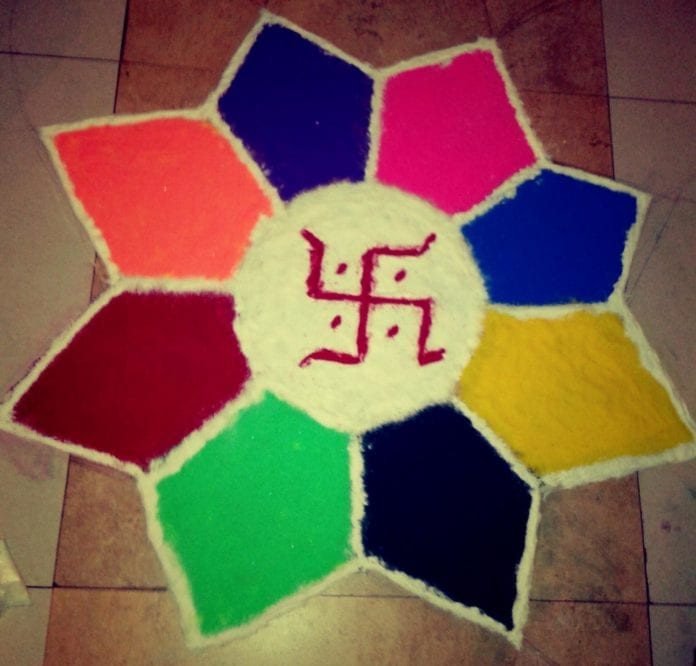 If you are an amatuer, here are some of the collection of rangoli patterns that are easy to make and simple. While searching online in order to find out the creative yet simple rangolis, the result will ended up showing many millions of rangolis. So, rather than doing that, you can view some of the best simple designed rangolis that is picked out sepecially for you. These are the ones which one can try them to decorate their home and also impress your in-laws and your neighbors. So, feel free to try any of these easy rangoli designs.