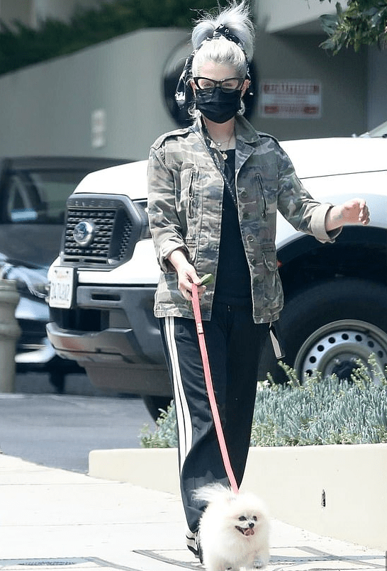 In her outing with her pet where she had swept her hairs back wearing cat-eye specs. She also included black and white athletic gear in her outfit. Although, she stepped out in a very casual way of outfit which is not a great concern Kelly Osbourne gets a warm hug from male mystery pal during dog walk one day after grab lunch together is so great news to see upon.